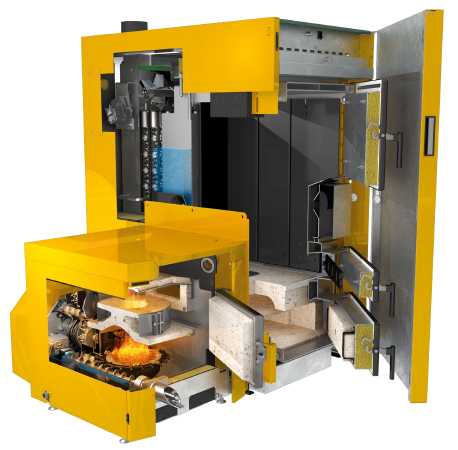 Der KWB Classicfire, bzw. der KWB Combifire sind optional mit einer automatischen Zündung ausgestattet. So kann der Kessel mit Holzscheiten vollgelegt und eine Uhrzeit für die automatische Zündung hinterlegt werden. Dies funktioniert unter anderem dank der modernen Technik von KWB, die es ermöglicht, dass die Anheiztür während des Anheizvorganges geschlossen bleiben kann. Egal wann Sie nach Hause kommen, Sie empfängt also wohlige Wärme.