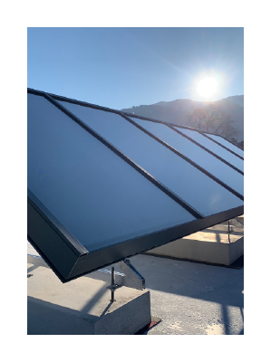 Bei der Solarthermie wird an den Kollektoren die Strahlung aufgenommen und in thermische Energie umgewandelt.